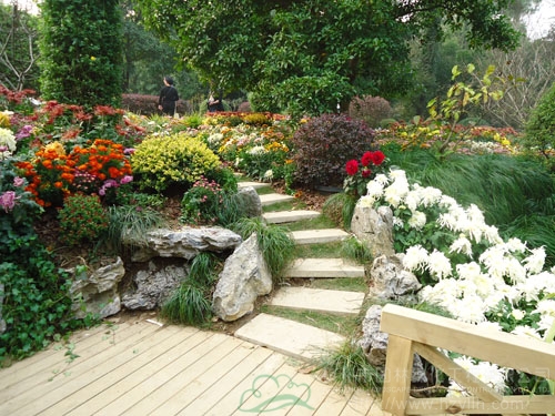 園路兩邊,菊花正艷