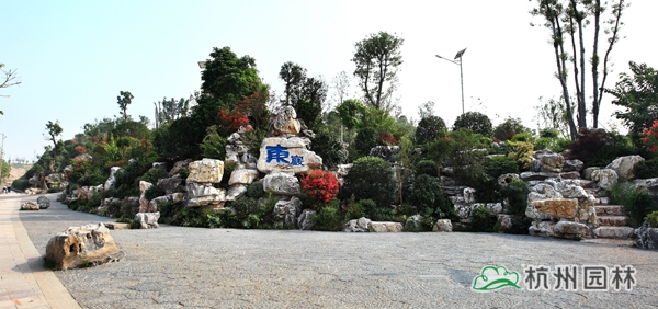 該工程位于瀘州城東長江東岸,面積近七公頃。其中,“東巖夜月”是瀘州老八景之一,景觀資源豐富。工程設計范圍為國窖大橋東岸橋頭節(jié)點,總面積近5萬平方米。設計理念以生態(tài)園林為出發(fā)點,以恢復東巖崢嶸峭壁,修復道側山體綠化,保護、改善、美化、提升區(qū)域生態(tài)環(huán)境為目標,本著以人為本、重視公眾參與的原則,充分利用現(xiàn)有的豐富自然資源及人文環(huán)境,規(guī)劃出一個既能滿足市民休閑娛樂,又能體現(xiàn)東巖公園特色的景觀場所。