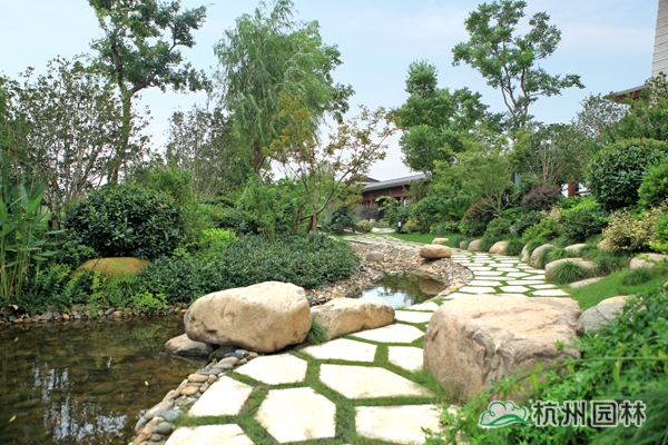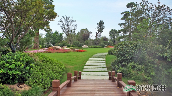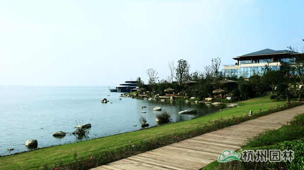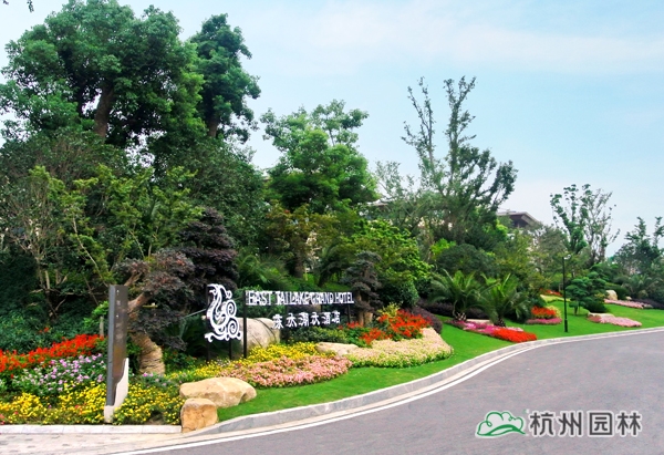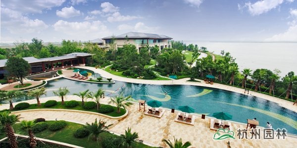 該工程位于江蘇吳江松陵鎮(zhèn)濱湖路三船河大橋附近,內(nèi)容包括綠化種植、硬質(zhì)鋪裝、園路施工、景觀小品工程、樁基工程、景觀照明系統(tǒng)等。在植物配置上,將中國園林的自然式手法與英國園林的自然式風(fēng)格相結(jié)合,營造出亦古亦今、中西混搭,整體恢宏大氣、局部婉約精致的高端酒店景觀。該工程榮獲“2014年度中國優(yōu)秀園林綠化工程大金獎(jiǎng)”。