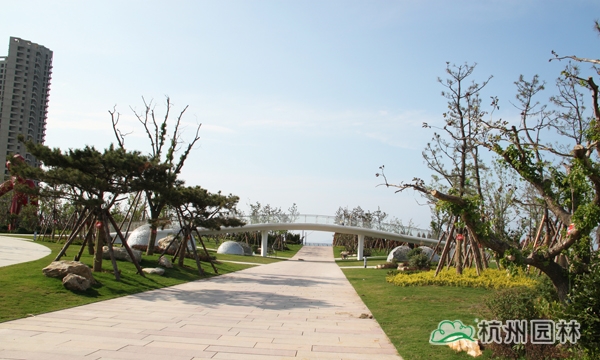 煙臺(tái)開發(fā)區(qū)濱海廣場項(xiàng)目位于開發(fā)區(qū)海濱路以北、峨眉山路與昆侖路之間,施工面積約10萬平方米,施工內(nèi)容主要包括綠化種植、硬質(zhì)鋪裝、園林建筑、水電安裝等,施工內(nèi)容多,工藝要求高,工程量大,是一個(gè)大型綜合性園林工程項(xiàng)目,由杭州市園林綠化股份有限公司承建。