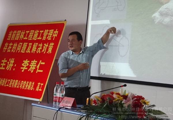 7月4日,應寧波城市職業(yè)技術學院邀請,杭州市園林綠化工程有限公司常務副總李壽仁在該校舉辦的“第三期園林企業(yè)經(jīng)營管理人才高級研修班”上作“當前園林工程施工管理中存在的問題與解決對策”專題講座,到場聽課的有來自寧波地區(qū)的園林企業(yè)高管、項目經(jīng)理以及在校師生。