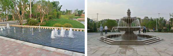 受中國傳統(tǒng)文化的影響,中國人喜歡靜觀或觀靜,現(xiàn)代小區(qū)水景設計一方面可以滿足人們對居住環(huán)境安靜舒適的需求,另一方面通過適宜小區(qū)環(huán)境尺度的噴泉、涌泉、疊泉等動水,增加小區(qū)環(huán)境的生氣及靈動性,給人們以感觀的刺激,用水的動態(tài)之美與水聲之美讓身處鬧市之郊的居民體會"山水有清音"的意境與自然美景。