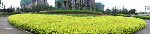 據(jù)高經(jīng)理介紹,該工程是壽光市2009年的一項重點市政工程,本著綠色、生態(tài)、自然的原則,在保留部分大樹的基礎上,對道路景觀進行了全新改造。工程由北至南,依次設置下沉廣場、北廣場、南廣場、方形廣場等多個景觀節(jié)點,每個節(jié)點的植物配置、地面鋪裝等都各不相同,形成一個個獨具特色的小場景;同時,又通過錯落有致的植物搭配、蜿蜒曲折的游憩步道,將整個工程貫穿起來,使得整體的景觀效果統(tǒng)一中富于變化,開闊中層次分明。