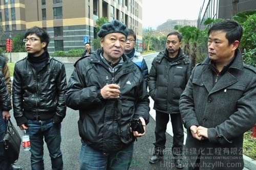 每到一個工程現(xiàn)場,工地負(fù)責(zé)人都先介紹工程的施工情況,然后,帶領(lǐng)大家進(jìn)行參觀,并隨時解答觀摩組一行提出的各種問題。每項工程觀摩結(jié)束的時候,三位專家都會集中點評,從苗木種植、植物搭配、水景營造、地形整理等各方面指出工程施工中存在的優(yōu)勢與不足,并提出需要改進(jìn)的地方。