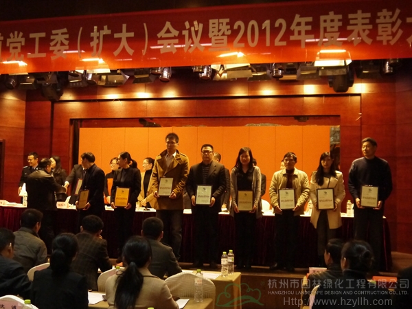 會議重要議程之一,宣讀2012年經(jīng)濟工作表彰決定,其中,杭州園林榮獲優(yōu)秀建筑企業(yè)、國家高新技術企業(yè)、杭州市著名商標、2011年度全市服務業(yè)先進企業(yè)等稱號,同時,公司董事長吳光洪獲得浙江省中小企業(yè)優(yōu)秀企業(yè)家榮譽受到表彰。