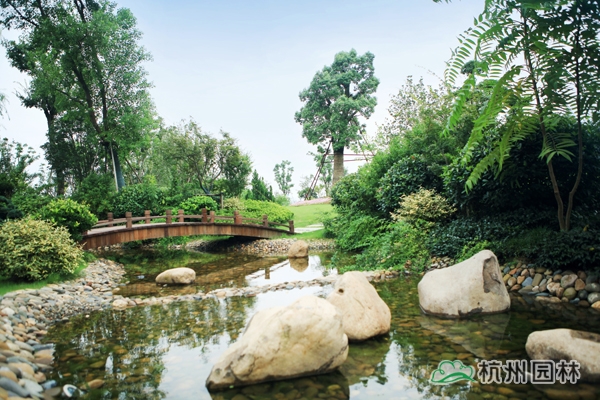 該項(xiàng)目的景觀工程施工總面積21.5萬平方米,分兩個(gè)標(biāo)段進(jìn)行。其中,一標(biāo)段施工面積13萬平方米,由杭州市園林綠化股份有限公司承建。施工內(nèi)容包括:綠化種植、土建施工、景觀小品、水景、景觀建筑、給排水系統(tǒng)及景觀照明系統(tǒng)等工程。自2012年6月開工,至2013年5月竣工,歷時(shí)近一年。