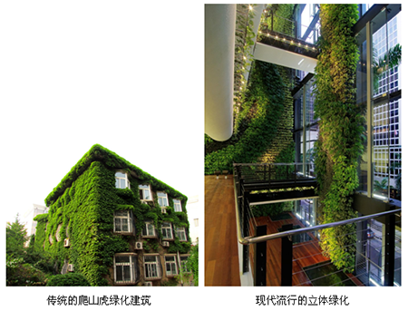 立體綠化的主要形式為立體綠化墻,也稱植物墻或綠墻,是近年來興起于法國的一項用于墻面垂直綠化的新技術。過去用于垂直綠化的植物只有大家熟悉的爬山虎、紫藤等,但是這些植物缺乏常綠、觀花、觀果的觀賞效應,而且還要引導植物攀爬墻面,搭棚架、立柱,幾年以后才成氣候,比較麻煩。而如今的立體綠化墻是一個小型生態(tài)系統(tǒng),它可以根據(jù)客戶需要,結合氣候、溫度、濕度、色彩等綜合條件,選配四季長綠或色彩豐富的植物,隨時在人們想要的地方構建出一個貼近自然又超脫自然的生活環(huán)境。當在屋頂、墻面等覆蓋了適當?shù)闹脖缓螅罅康臒釟夂妥贤饩€都會被植物抵擋,這層植物墻能夠使其表層溫度降低15°C左右,夏天基本可以不需要依賴空調(diào)。而且植物墻能消除墻面對陽光的反射,使走在大街上的人們不受陽光干擾,感受到?jīng)鏊耐瑫r也避免眼睛被強光照射。到了冬天,植物墻又具有保溫的功能,這種方式非常低碳節(jié)能,并且更健康。