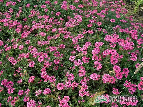 美女櫻,其姿態(tài)優(yōu)美,花色豐富,色彩艷麗,盛開時(shí)如花海一樣,令人流連忘返。美人櫻株叢矮密,花繁色艷,開花部分呈傘房狀,花色有白、紅、藍(lán)、雪青、粉紅等,花期為5-11月。喜陽(yáng)光、不耐陰,較耐寒、耐蔭差、不耐旱?;ㄆ诳蓢娏姿岫溻?,促進(jìn)花開放。