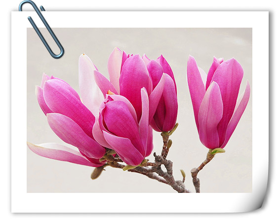 不同顏色的玉蘭中,開得最早的,當(dāng)數(shù)白玉蘭,那純正的白色花朵,纖塵不染,清雅秀麗中有著瓷器的溫潤(rùn)質(zhì)感,仿佛一件件潔白的工藝品,很想將它捧在手心,慢慢品味它的精致與美麗。紫色的玉蘭花,則有著淡淡的華貴氣質(zhì),那含苞欲放的花朵,酷似一枝枝飽蘸紫色墨水的毛筆,揮灑自如間,描繪出獨(dú)屬于春天的明艷風(fēng)情。黃色的玉蘭花,呈現(xiàn)出淡淡的鵝黃色,柔柔的,嫩嫩的,帶著清新寧靜的氣息,有著超凡脫俗的美。不同顏色的玉蘭花有著不同的美麗,但每一種都那么迷人,充滿靈動(dòng)的氣息。