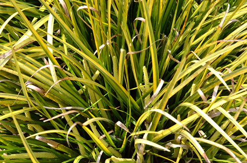 我是天南星科菖蒲屬植物,叢生型多年生常綠草本,植株低矮,株高20-40cm;葉色艷麗,葉條形,邊緣及葉心有金黃色線條;花序圓柱狀,黃綠色;全株帶香味。記住我了嗎?我最大的優(yōu)勢是常綠、葉片全年金黃色哦!冬季景觀帶上我,包君滿意!