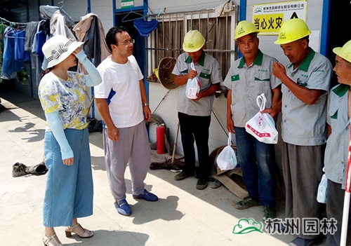 7月20日至28日,杭州市園林綠化股份有限公司的夏季高溫防暑慰問工作也陸續(xù)進行,工會領(lǐng)導(dǎo)和各有關(guān)部門負責(zé)人帶著防暑降溫物品,奔赴各大在建項目工地,為一線施工人員帶去全體員工的關(guān)心和慰問。