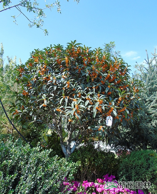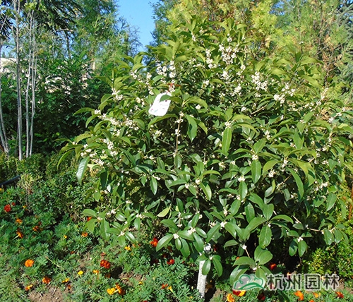 “浙江園”里應用的桂花品種以丹桂和銀桂為主,共計50余棵,包括大喬木和小球類。為保證開園期間的觀賞效果,這些桂花被提前運送至銀川,利用當地的低溫環(huán)境誘使其完成花芽分化,終于在九博會開園時營造出了桂花滿樹、滿園飄香的氛圍。