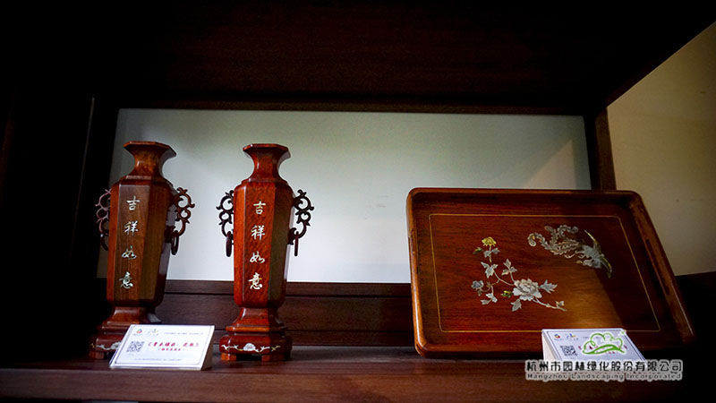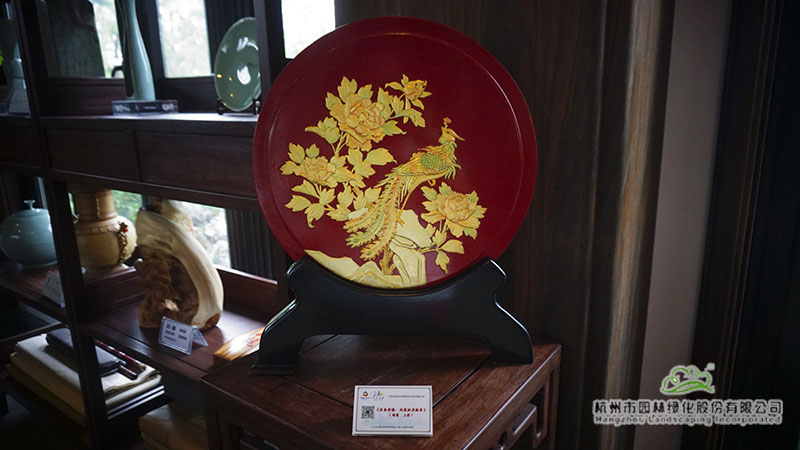 在浙江園的富春山居內(nèi),泥金彩漆、骨木鑲嵌、金銀彩繡等非遺展品也一并展出。泥金彩漆是寧波傳統(tǒng)的“三金”工藝之一,現(xiàn)主要分布于寧波市及其周邊地區(qū)。而骨木鑲嵌則是在木器表面嵌入動(dòng)物骨骼進(jìn)行裝飾,也是寧波的一門(mén)特色手工藝。金銀彩繡則是在真絲面料上用各色彩線(xiàn)繡制、金線(xiàn)和銀線(xiàn)盤(pán)繡而成的漢族民間手工藝品之一。這些非遺展品展現(xiàn)了寧波深厚的文化底蘊(yùn)與人文精神。