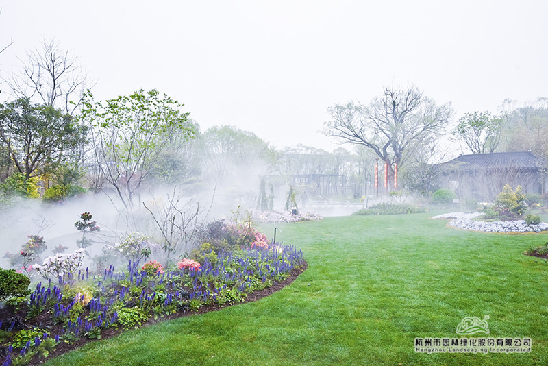 “延慶空氣干燥,而浙江園內(nèi)的植物,基本來自氣候溫潤的南方,因此,如何有效保水和增加空氣濕度,以此來提高植物的成活率和保證后期生長,是我們施工時必須要考慮的問題?!眳切〕烧f,“所以,園內(nèi)我們一共做了四套系統(tǒng),大樹根部的滴灌系統(tǒng)和樹上的噴灑系統(tǒng),大草坪的澆灌系統(tǒng),以及針對全園的霧森系統(tǒng)?!?/div>