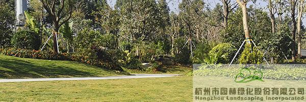 地被植物和小灌木充實(shí)園林的下層空間,往往起到“鑲邊”的效果,如果種植不好,很容易使底部出現(xiàn)裸露的土壤,景觀效果大打折扣。而該項(xiàng)目在現(xiàn)場放樣之后,先對地形進(jìn)行處理,形成一定的坡度,然后在地被植物或小灌木種植時,上面坡度高的地方平種,隨著逐漸向下方邊緣靠近,植物種植向下方傾斜,逐步過渡,從上到下形成弧線,將土壤遮蓋。“這種處理手法,不但使下層空間看著自然美觀,而且避免了地面出現(xiàn)裸露情況。”葉偉華的言語中,不經(jīng)意間流露的,是杭園人對細(xì)節(jié)的極致追求。