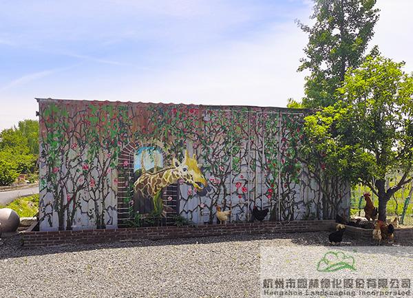 風(fēng)景不僅僅停留在墻上,還引景入院。通過對庭院內(nèi)部景觀改造提升,清理院子中散落的物件,在門前屋后布置小景,放置農(nóng)村不用的木桶、水缸,或瓶瓶罐罐的陶瓷制品,種上睡蓮、荷花、銅錢草、吊蘭、絡(luò)石、多肉等植物,形成濃厚的鄉(xiāng)村風(fēng)情。