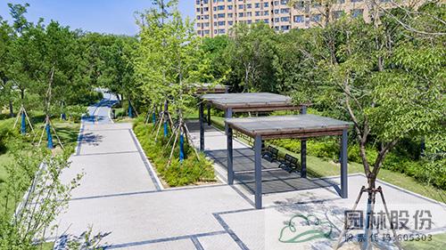 項目毗鄰多處居住小區(qū),考慮周邊居民需求,在觀瀾別院、中茵龍湖國際、維維龍湖灣南側(cè)等綠地,選用小游園的綠化形式。在綠地中設(shè)置廊架廣場、杉木樁廣場、樹池廣場等景觀節(jié)點,貫穿綠道園路,為周邊居民提供休息娛樂的活動空間。