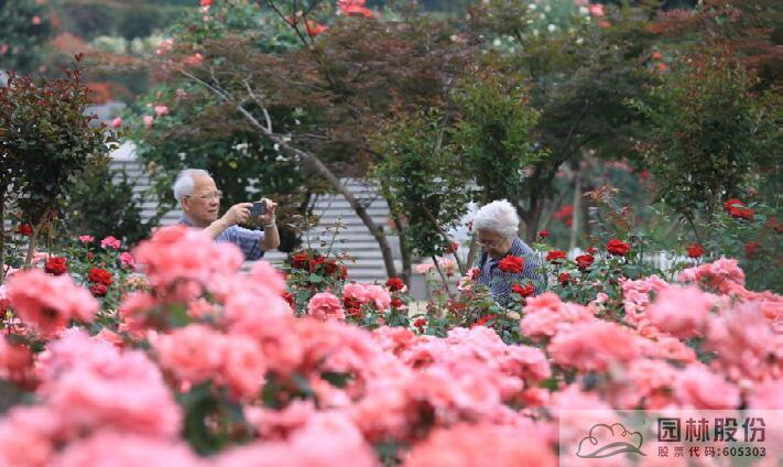 月季花園,通過(guò)在中心草坪設(shè)計(jì)月季花廊、花島與花壇等一系列元素,展示爬藤月季、樹型月季、造型月季等多種類型的月季,打造一個(gè)繽紛花園,讓市民可以無(wú)限流連,賞花、打卡。中心草坪上的六大花島,通過(guò)花球、花柱以及雙心形花架、花缽等園藝小品的點(diǎn)綴,提升整體觀賞層次。
