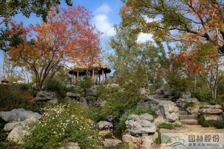 沿著山石小道拾級(jí)而上,便到了“問(wèn)茶”展區(qū),這里有一處茅草雙亭,是整個(gè)杭州園的制高點(diǎn),可一覽全園風(fēng)光,也可以遠(yuǎn)眺園外風(fēng)景。“綠色、智能、節(jié)儉、文明”是杭州第19屆亞運(yùn)會(huì)的辦會(huì)理念,此次也同樣運(yùn)用到了杭州園中,在建園初期,建設(shè)人員開(kāi)挖出了不少大大小小的山石,并巧妙地就地取材,最小化干預(yù),修建成了山石小路,這些石塊鋪成的園路與太湖石營(yíng)造的假山溪澗融合在一起,渾然天成。