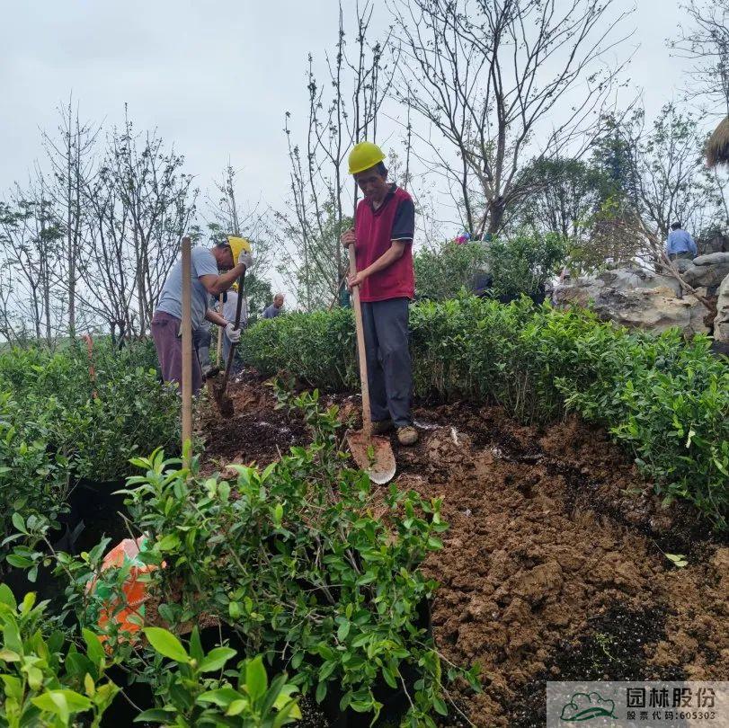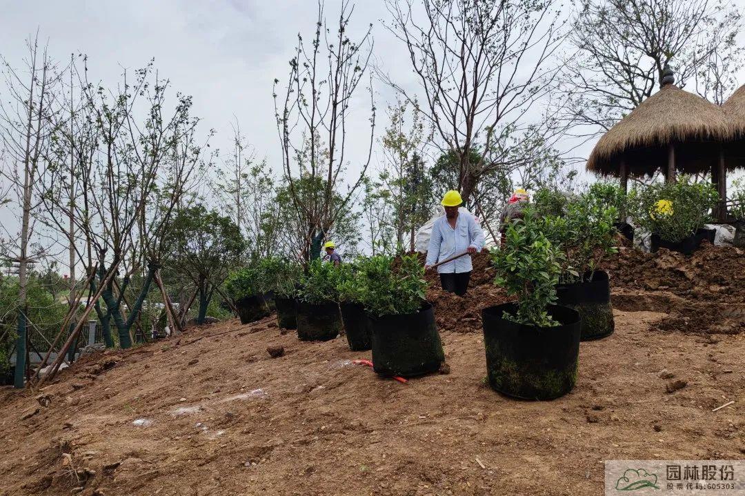 竹炭有機基質主要是由竹纖維、有機氮肥、EM菌、生物炭、羊糞組合而成,經過高溫發(fā)酵和堆肥腐熟,具有更輕質、蟲卵雜草更少、疏松更透氣、性價比更高等優(yōu)勢,且竹炭資源可再生,生態(tài)環(huán)保。在全面綠化施工時,施工團隊運用竹炭有機基質與回填土混合回填的方法種植喬木類,在地被植物方面則以竹炭有機基質作為表層土平鋪。