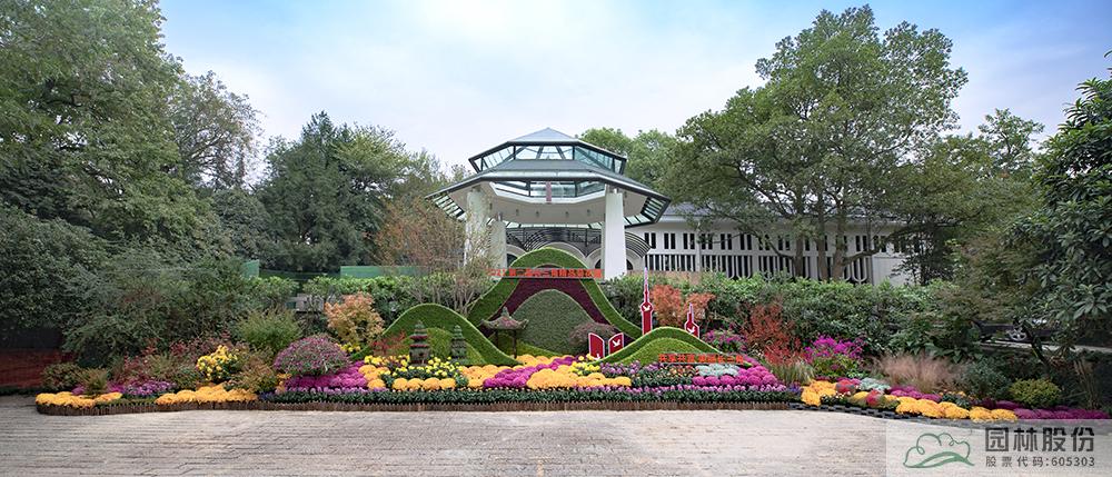 張楠帶領(lǐng)團(tuán)隊打造的2021年長三角菊花精品展開幕式背景主題景觀