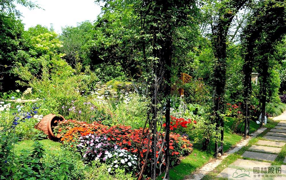 2017年,張楠主持設(shè)計與施工的“首屆中國花境競賽”參賽作品《花溪疊翠·芳滿庭》,位于臨安青山湖花園中心室外景觀展示區(qū),在現(xiàn)有庭院布局基礎(chǔ)上,外圍景觀結(jié)合木香藤架,打造林蔭、陶罐花溪、鼠尾草等景觀系列,營造百花齊放、芳菲無數(shù)滿庭院的意境;內(nèi)部則用櫸樹、景石、石籠擋墻及園路圍合成半開敞空間,以八仙花為主材、搭配鳶尾、石榴、落新婦、百子蓮等,打造3個花境組團(tuán),營造人們熱愛生活、向往美好的鄉(xiāng)村私密花園美景。歷經(jīng)數(shù)月的精心施工、養(yǎng)護(hù)與專家評比,該作品從43個參賽作品中脫穎而出,榮獲“首屆中國花境競賽金獎”。