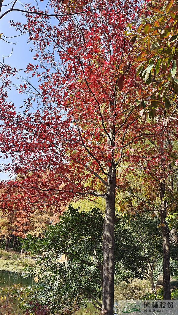 金黃的無患子、絢麗的紅楓、黃紅變換的楓香構(gòu)成了畫境園初冬繽紛世界的三部曲。半島的烏桕、池塘對岸的水杉水松池杉混交林,則如跳動(dòng)的音符,共同譜寫著初冬的樂章。