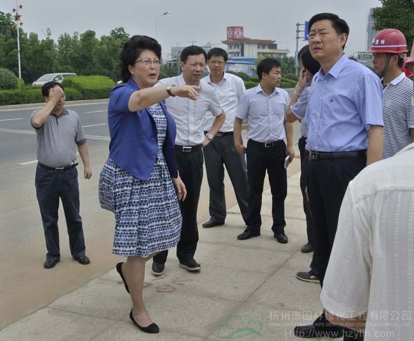 6月20日上午,江西省吉安市市委書(shū)記王萍一行來(lái)到杭州市園林綠化工程有限公司承建的后河二期改造“金腰帶”工程施工現(xiàn)場(chǎng)視察工作,項(xiàng)目總指揮徐建良、項(xiàng)目經(jīng)理沈玉平等陪同前往。