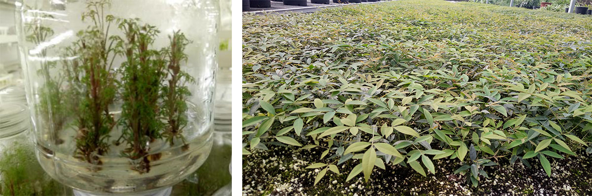 研發(fā)中心擁有1200㎡組培研發(fā)及生產(chǎn)車(chē)間,年產(chǎn)組培種苗500萬(wàn)株。經(jīng)過(guò)多年的研發(fā),建立了南天竹屬、冬青屬、礬根屬、紫金牛屬、繡球?qū)佟褜俚榷喾N植物組培快繁技術(shù)體系,在木本植物組培快繁技術(shù)方面處于國(guó)內(nèi)領(lǐng)先水平。